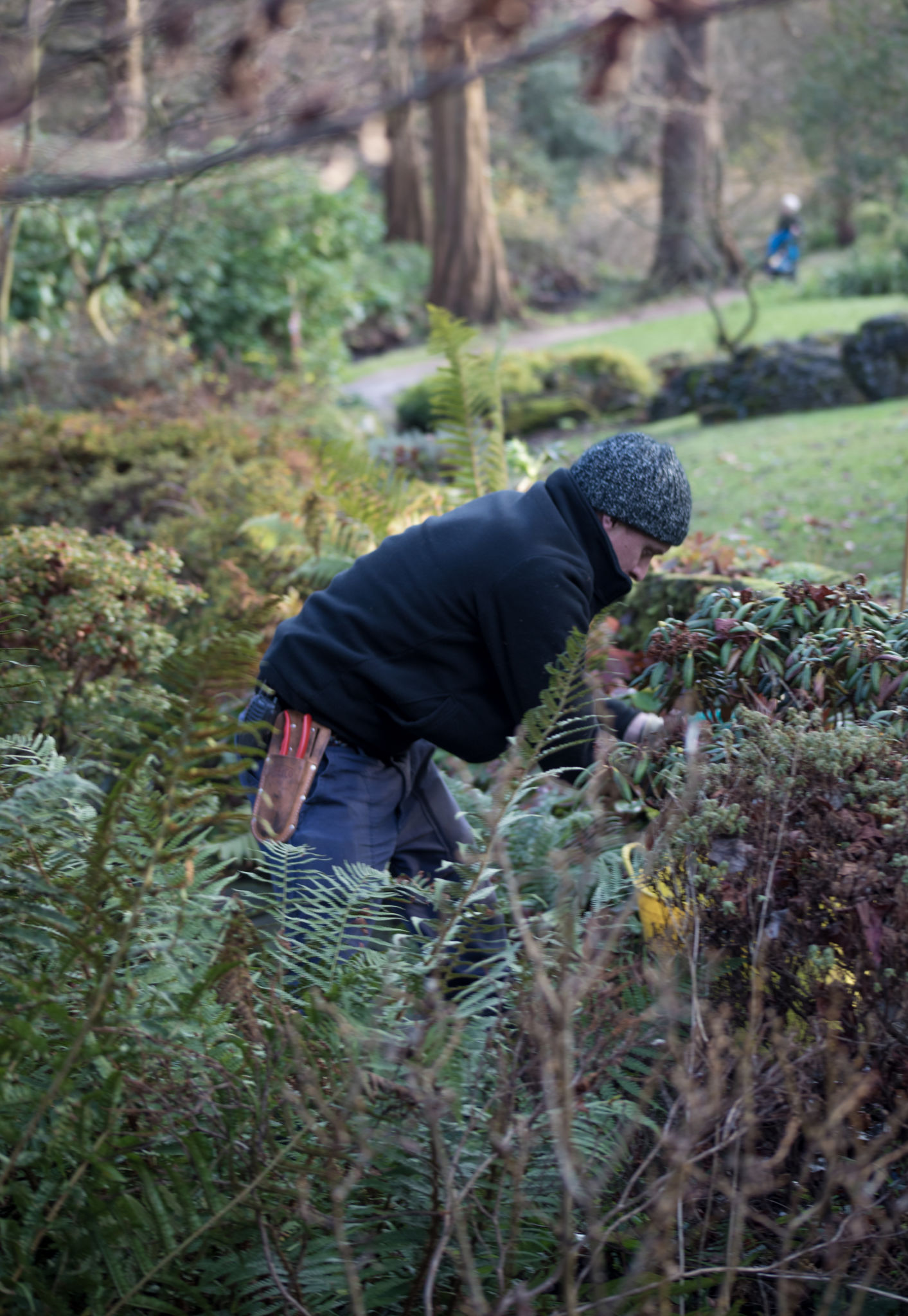 The Sandstone Rock Garden is one of our most important original features and on Tuesday Horticultural Trainee Huw Morgan was hard at work putting it to bed for winter. Huw worked systematically through the different beds. First he cleared the fallen leaves before cutting back and weeding between plants.