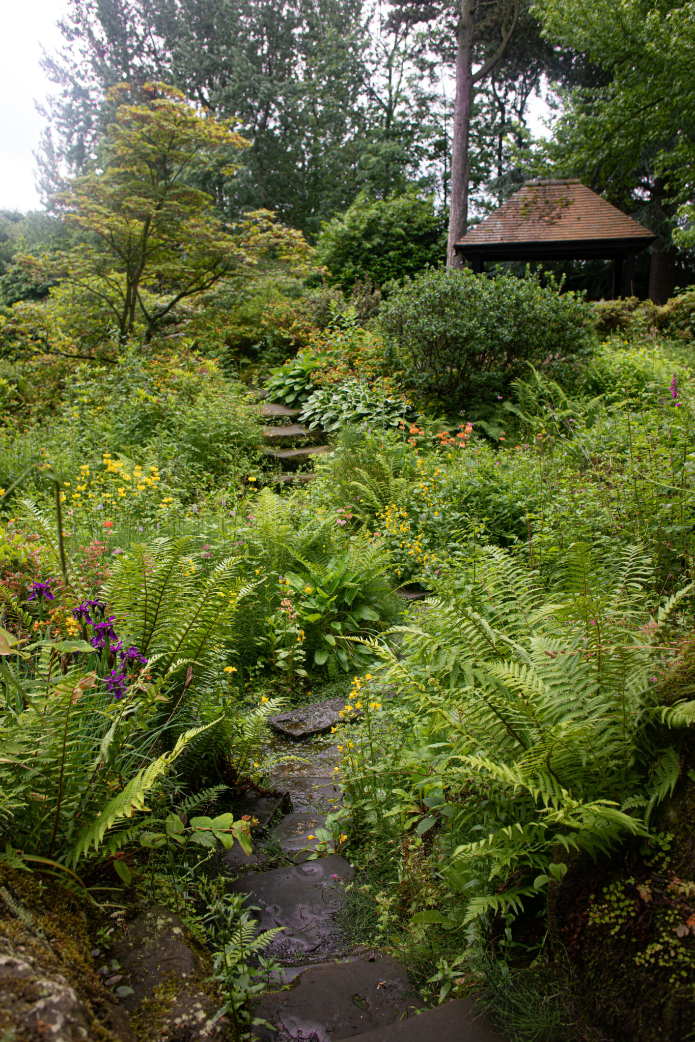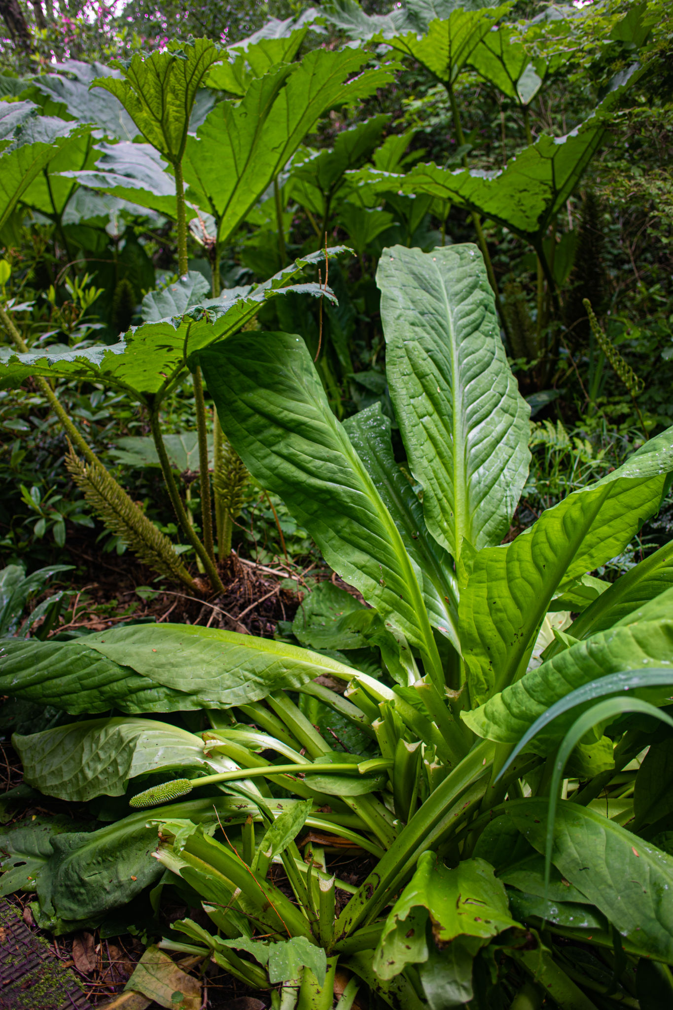 Vulnerable plants in more formal areas of the garden are staked in advance to prevent damage, but in the wilder, wet woodland simply pruning away anything that looks unsightly is sufficient. Plants such as giant rhubarb are so vigorous that you can prune away without any fear of harming the plants long-term health or diminishing its impact.