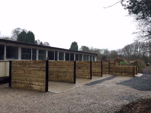 Over the past few months we have had new, improved compost bays constructed behind the scenes. Our old bays had become badly damaged and dilapidated over the years. Constructed from wood, the structure had become rotten in places, causing it to collapse. Access to the bays were hampered by muddy paths that were churned up by constant footfall, wheelbarrow traffic, and were prone to flooding.